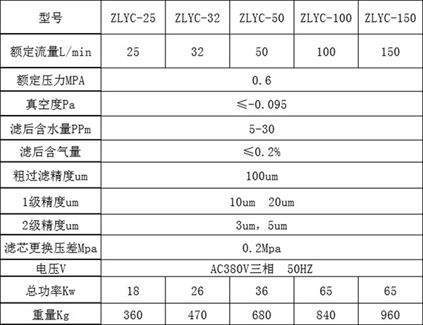 一、真空濾油機(jī)技術(shù)參數(shù):